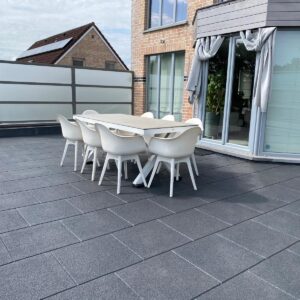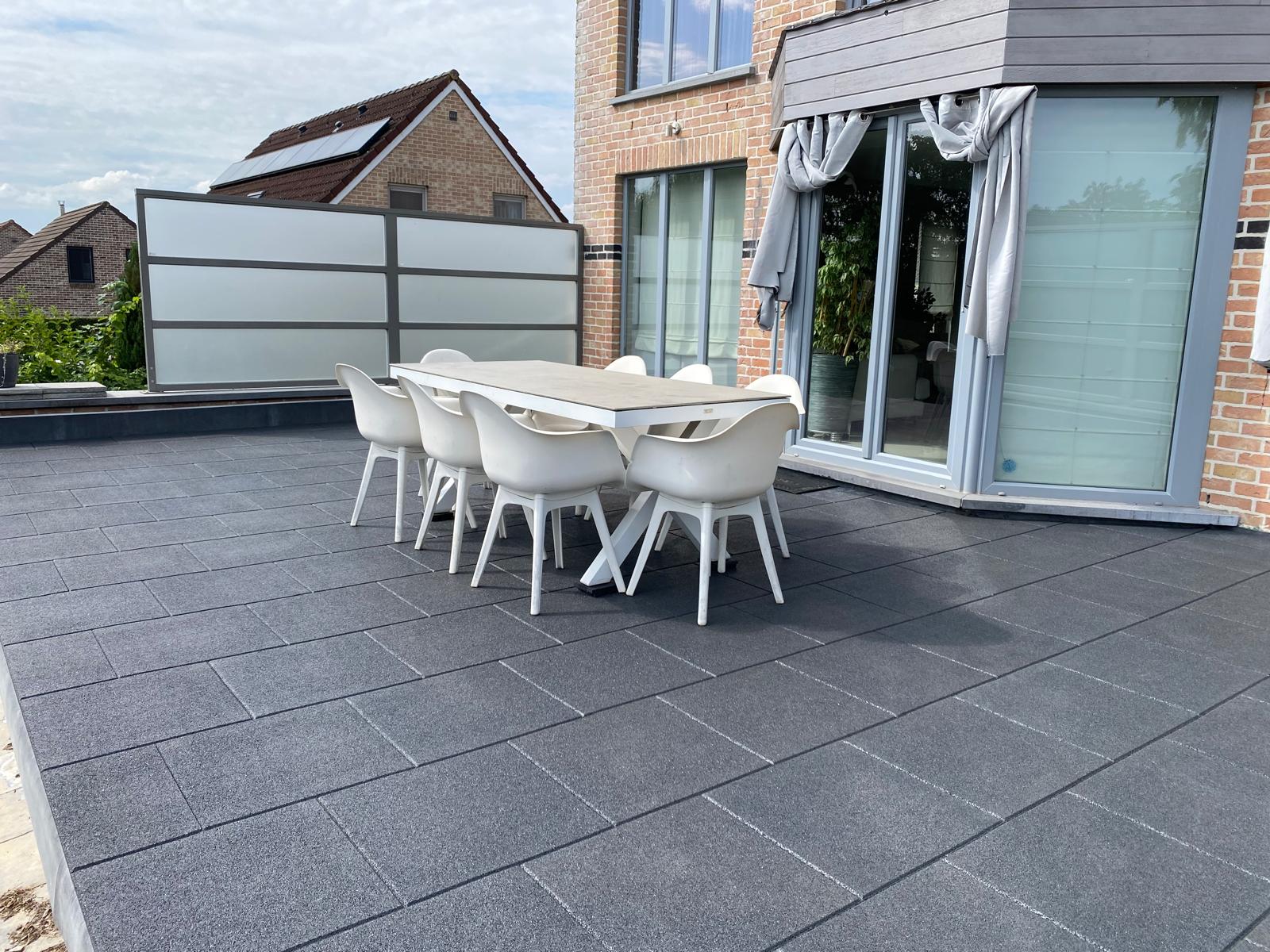 Onze dak- en terrastegels zijn zowel voor de professionele- als particuliere markt. De rubberen tegels zijn vocht doorlatend, worden snel droog, waardoor algen en mossen nauwelijks de kans krijgen om aan te groeien.